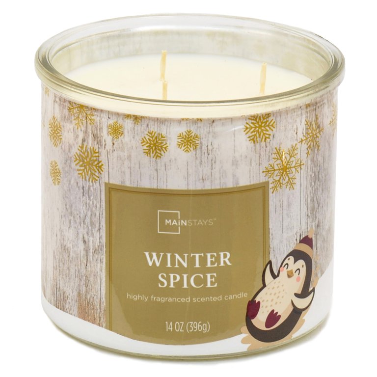 Source : www.facebook.comMainstays Penguin Wrapped 3 Wicked Scented Winter Spice candle, 14
